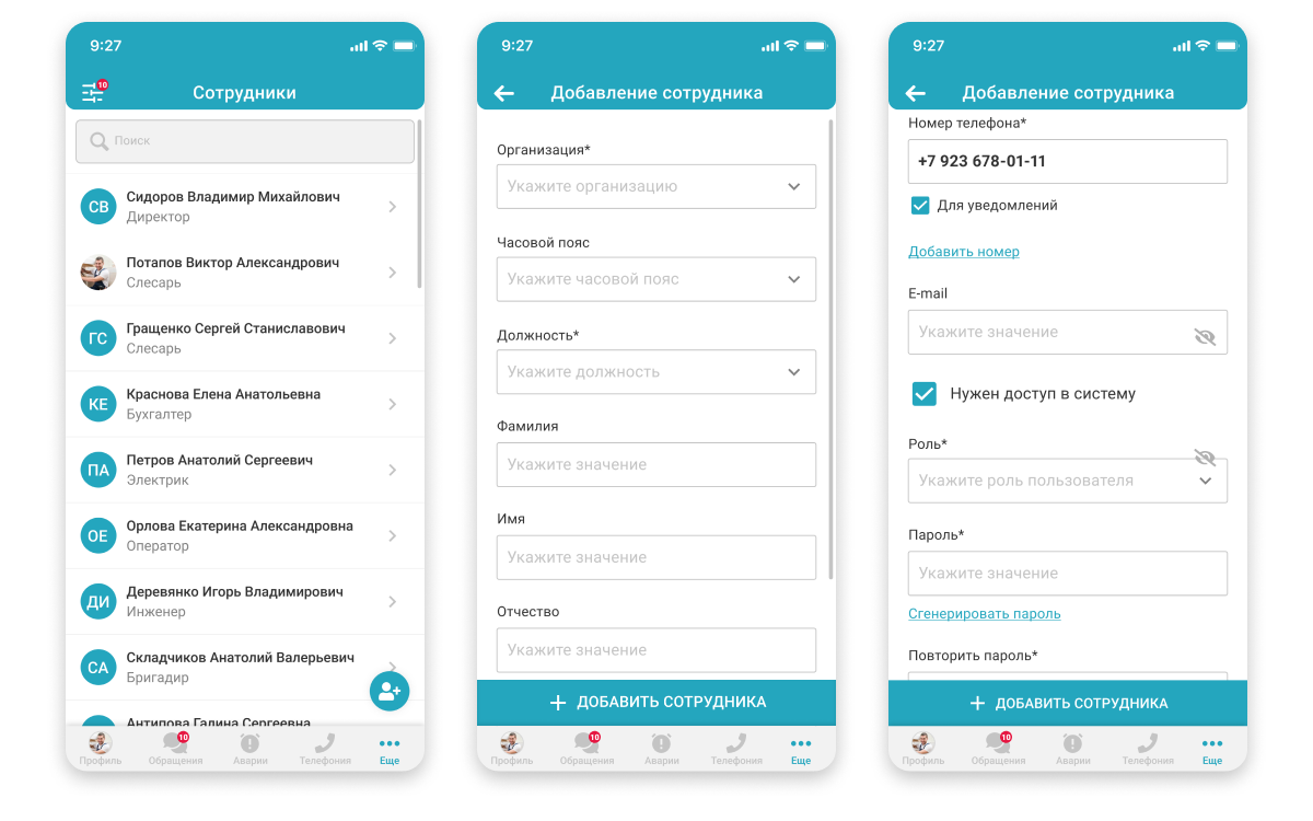 В подробной карточке обращения сделали активную строку с адресом дома и переход в карточку это дома, в карточке отображается основная информация - о типе дома, этажность. Также в карточке дома можно оставлять комментарии, например о том, где лежат ключи, какое отопление и т.д., а также можно прикреплять фото и видео. | | | | Добавили возможность прикреплять к аварии фото/видео и оставлять комментарии по аналогии как это сделано в карточке обращения. | | | | Убрали отображение html кода в авариях. | | | | Раздел «Сотрудники» — НОВИНКА! | | | | Реализовали новый раздел "Сотрудники" c возможностью добавления и редактирования сотрудников компании. | | | | Появится возможность выгрузки списков: обращений, аварий, звонков. | | | | Будут добавлены быстрые фильтры по статусам обращений.