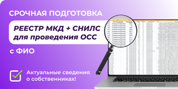 Стоимость реестра с ФИО: МКД до 200 помещений — 8 000 рублей МКД до 400 помещений — 10 000 рублей МКД до 500 помещений — 12 000 рублей МКД от 500 помещений — 16 000 рублей